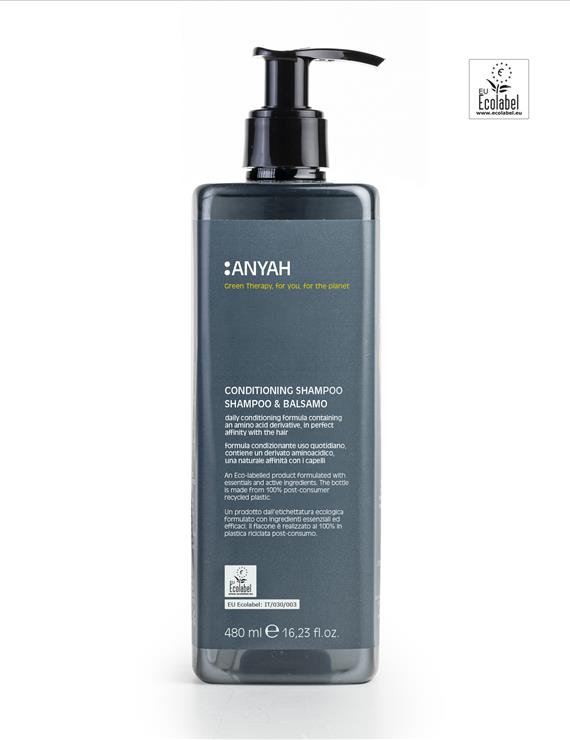 UN CHAMPÚ ACONDICIONADOR CERTIFICADO ECOLABEL, CERTIFICACIÓN QUE SE OTORGA A LOS PRODUCTOS QUE CUMPLEN ESTRICTOS CRITERIOS ECOLÓGICOS A LO LARGO DE TODO SU CICLO DE VIDA.